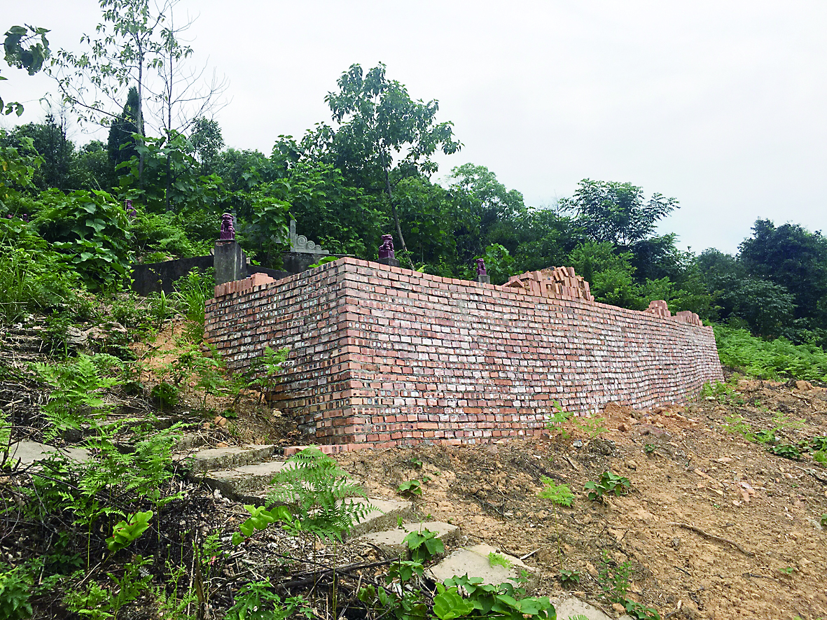 ▲湾塘村四方土组,山上一处墓地。 记者/刘平 摄