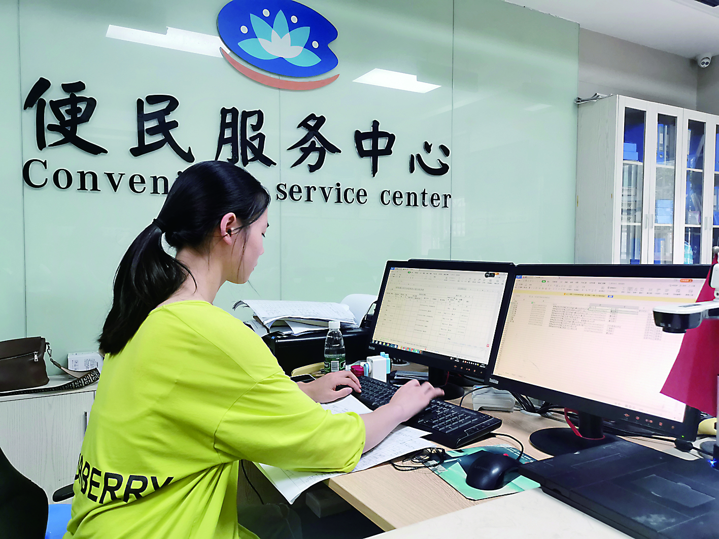 ◀小茜在社区做信息录入员工作。记者/孙晓静 摄