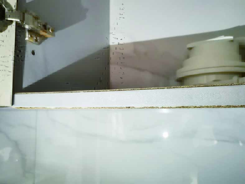 ▶尹女士家的厨柜,板材已经被水泡发 记者/姚时美 摄