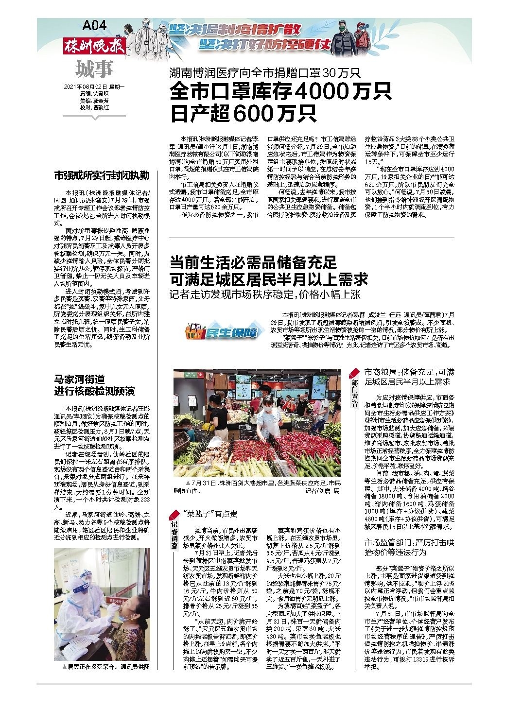 当前生活必需品储备充足 可满足城区居民半月以上需求
