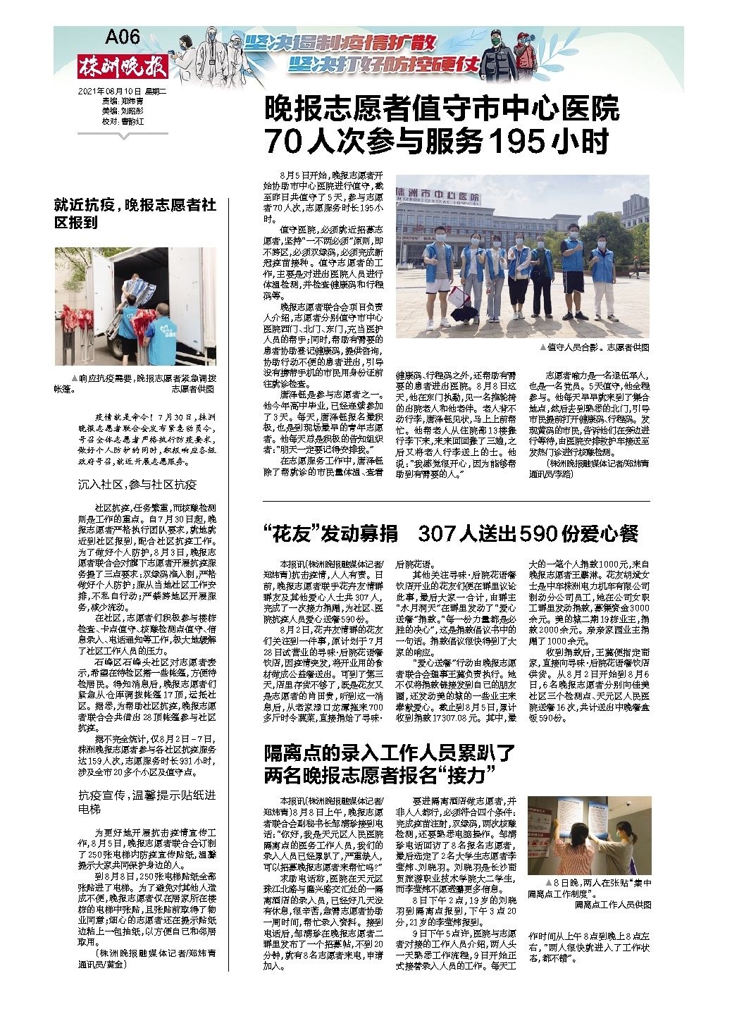 晚报志愿者值守市中心医院 70人次参与服务195小时