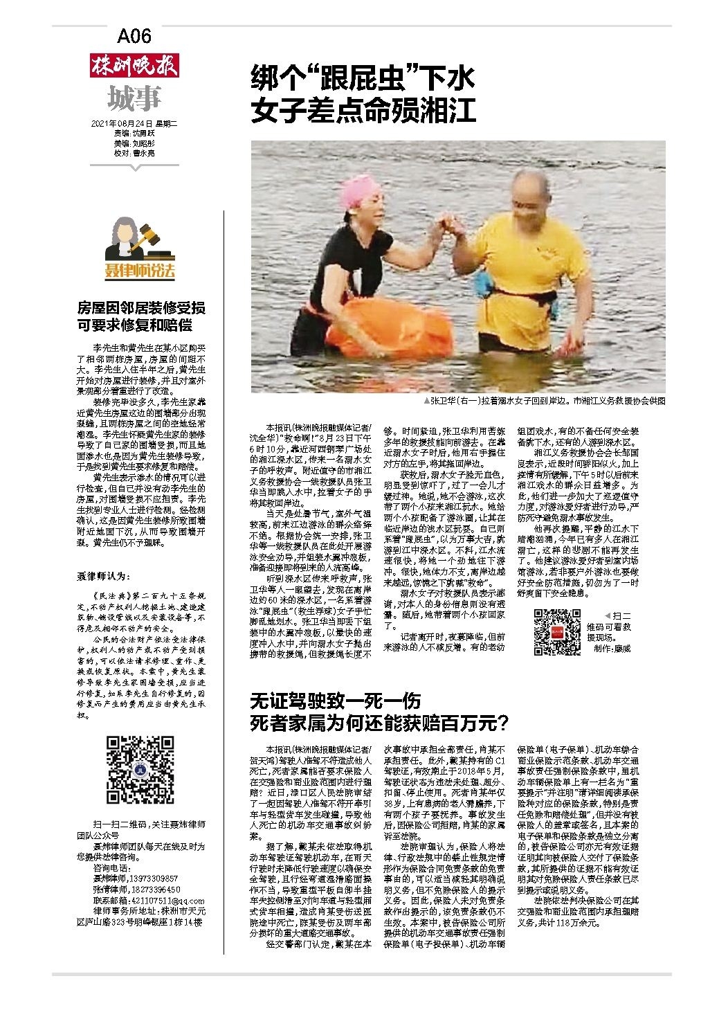 绑个“跟屁虫”下水 女子差点命殒湘江