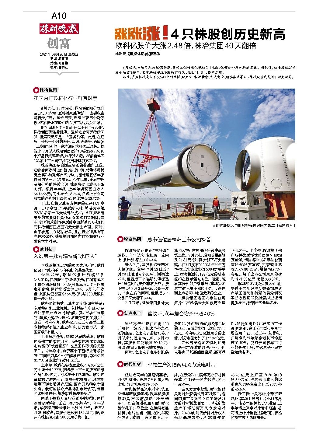 4只株股创历史新高
