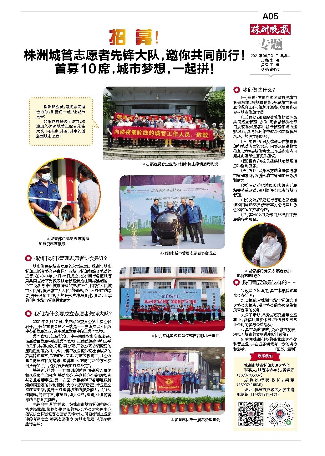 株洲城管志愿者先锋大队,邀你共同前行! 首募10席,城市梦想,一起拼!