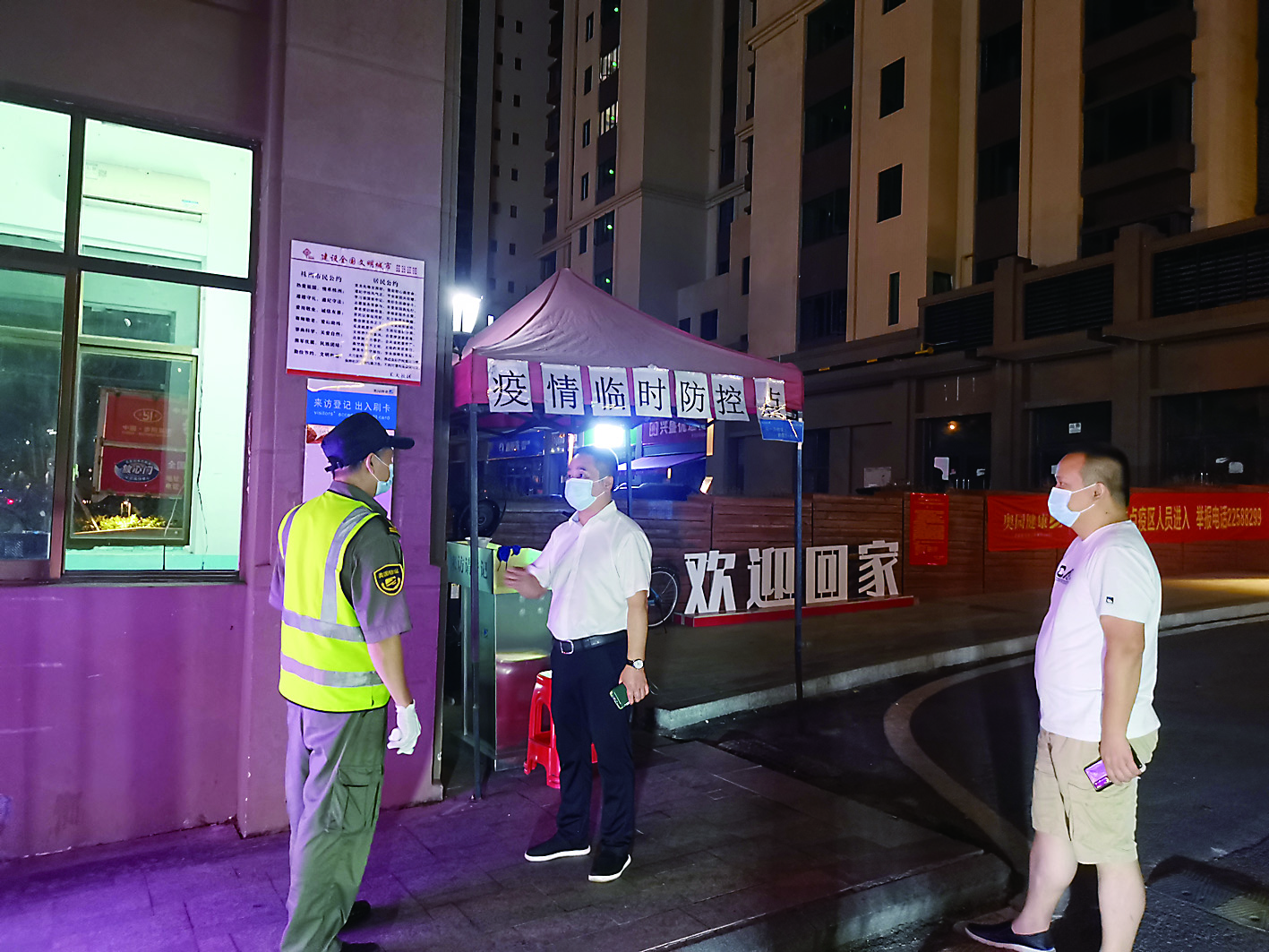 ▲市物业事务中心和物业管理协会联合督查工大小区防疫门岗。(照片由受访者提供)