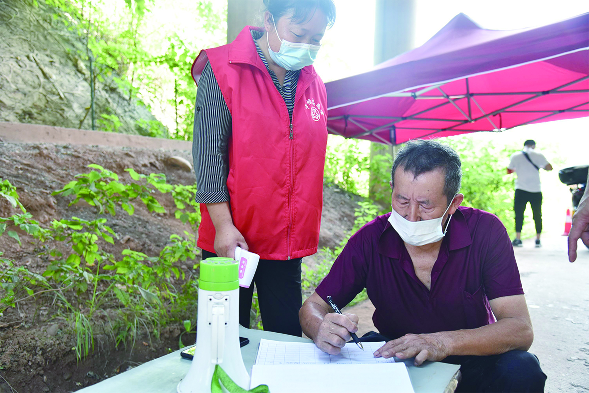 疫情发生后,家住云龙示范区三塔桥社区的唐芬主动请缨,第一时间和社区取得联系,带着儿子帅培艺前来三搭桥社区川冲执勤点做志愿者。帅培艺今年16岁,上半年才从龙头铺中学毕业,唐芬,今年41岁,左腿三级残疾,是一名社区环卫工人。7月30日起,母子俩上岗,积极协助排查,坚决做到逢车必检、逢人必测。 “现在疫情出现在我们的身边,能够出一份力,我们就力所能及地出一份力。”唐芬说,正值暑假,儿子也非常想加入志愿者队伍,为疫情防控贡献出自己的力量。