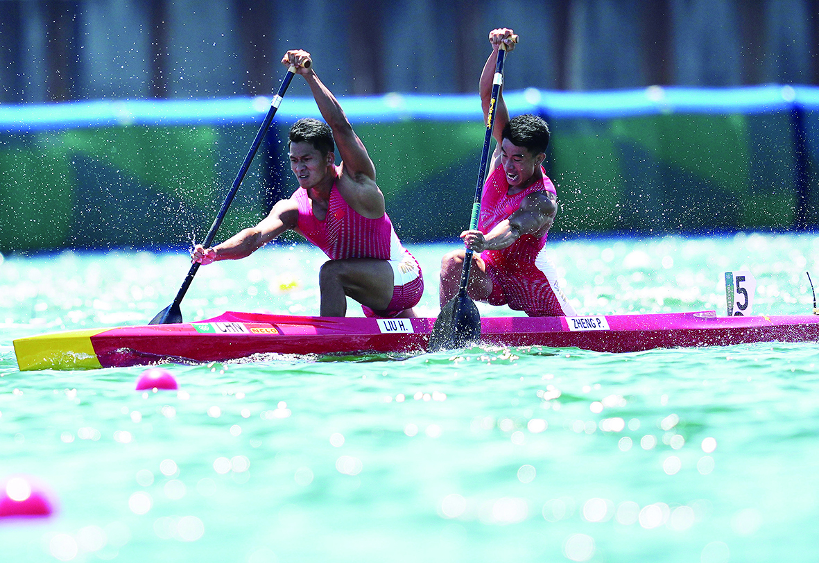 ▲8月3日,中国选手刘浩(前)/郑鹏飞在比赛中。新华社记者/薛玉斌 摄