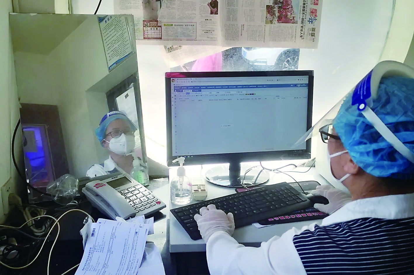 今天也出了个糗事:彭哥给我戴好头套、防护面罩后,我感觉有点看不清,就问彭哥这个防护面罩为什么看不清。彭哥说:“防护面罩是为了防护来访者的飞沫,一定要戴,你不是戴了眼镜吗?应该看得清。”可我隔着防护面罩看电脑时确实看不太清,只能把头稍稍抬起来,或者把防护面罩抬起来一些,看上去跟别人戴得很不一样。心想:我这都看不清,医护人员隔着护目镜还要做检测、做手术该有多艰难啊!下午采样科一位医生小姐姐来拿检测报告,我又把我的疑问提出来,她看了一下说:“你的防护面罩膜没有撕下来,怎么看得清哦!幸亏你问了我,确实有些科室的医护人员还不一定知道呢。”小姐姐帮我把两块膜撕下来,顿时感觉眼前一片清晰!我终于戴得像模像样了。