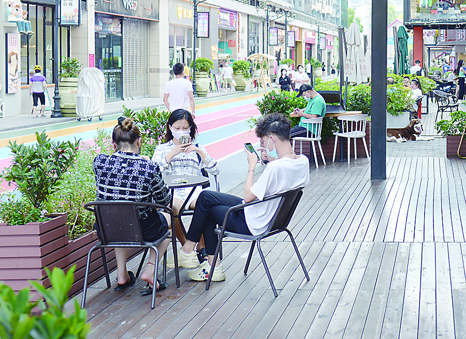▲中心广场大汉悦中心步行街,不少市民在此休闲。