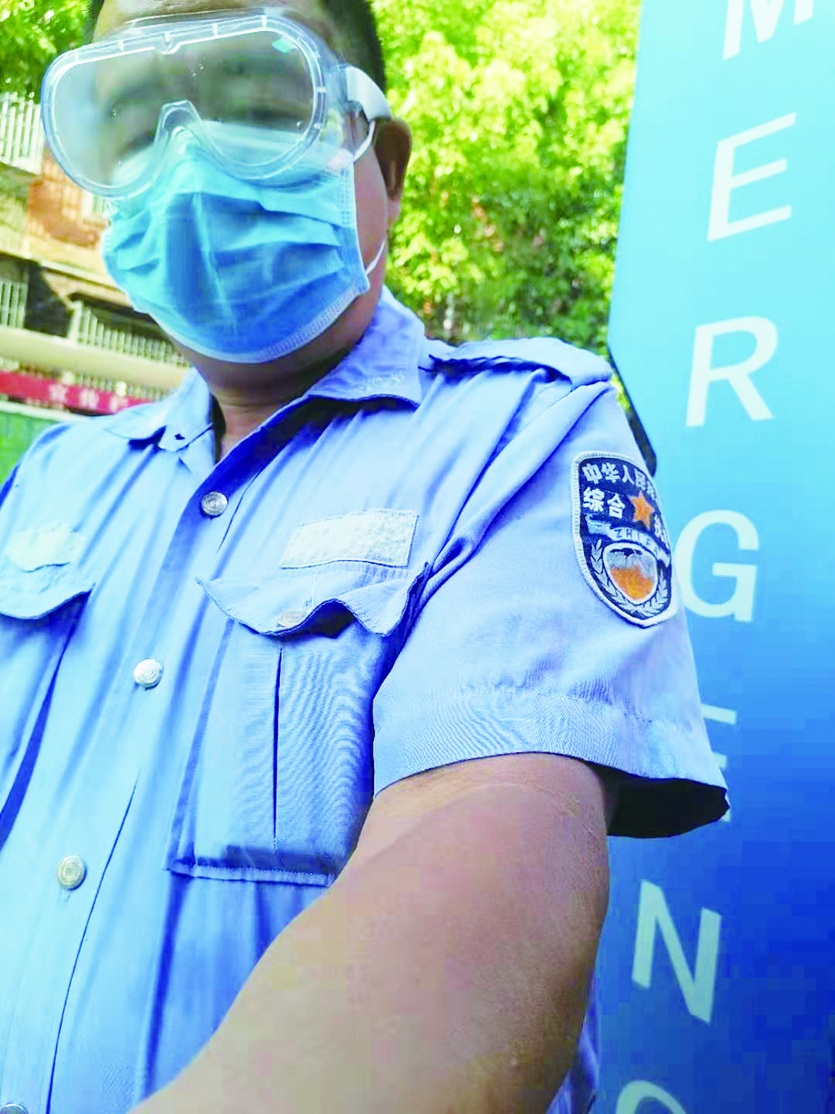 ▲疫情期间,宾友华在锦绣香江小区值守。受访者供图