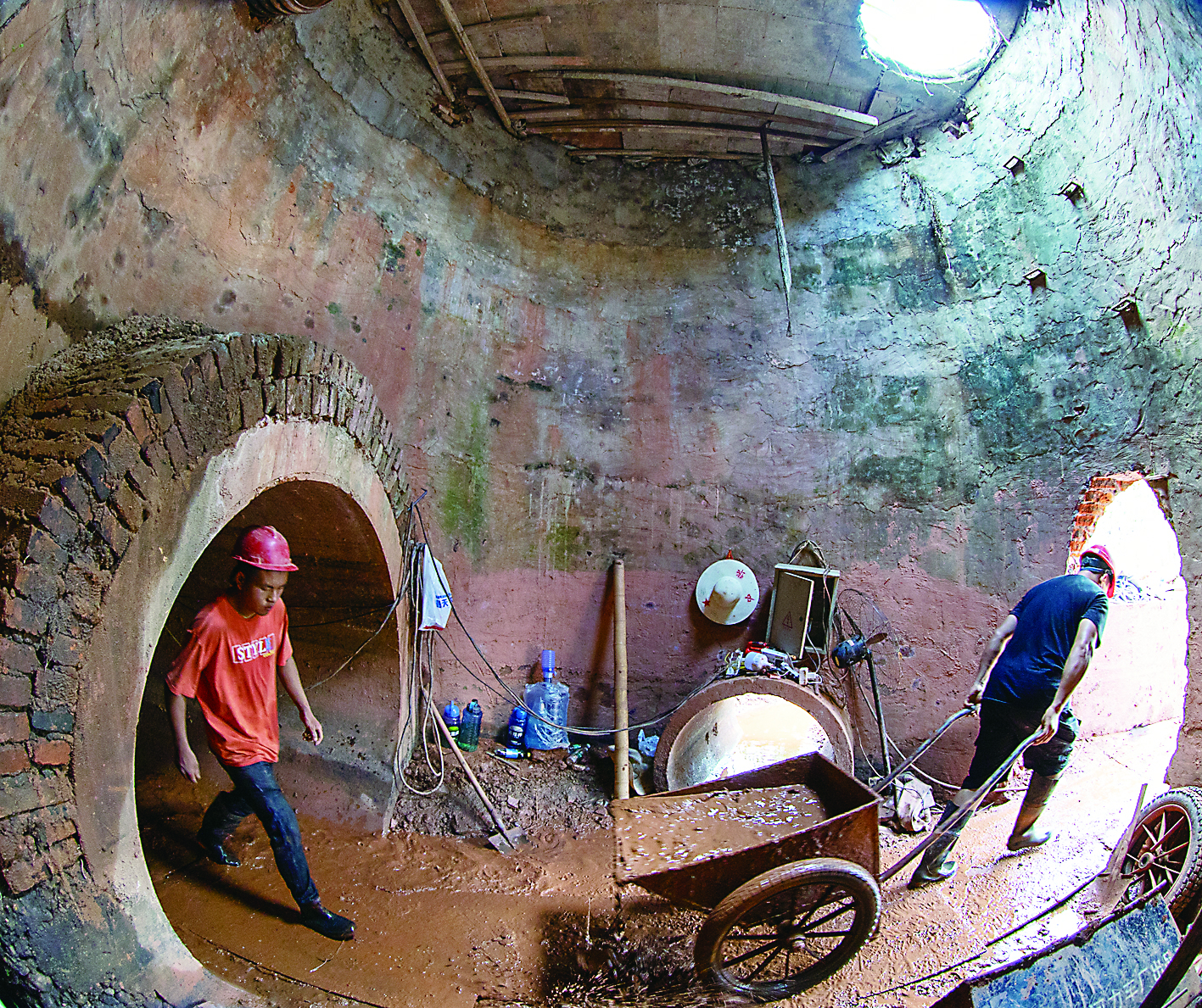 暗涵里还有一段“硬骨头”,长30米,直径只有1.5米。赵敏武说:“这一段有到膝盖的积水。我们只能猫着腰,将淤泥一桶桶地提出来。”