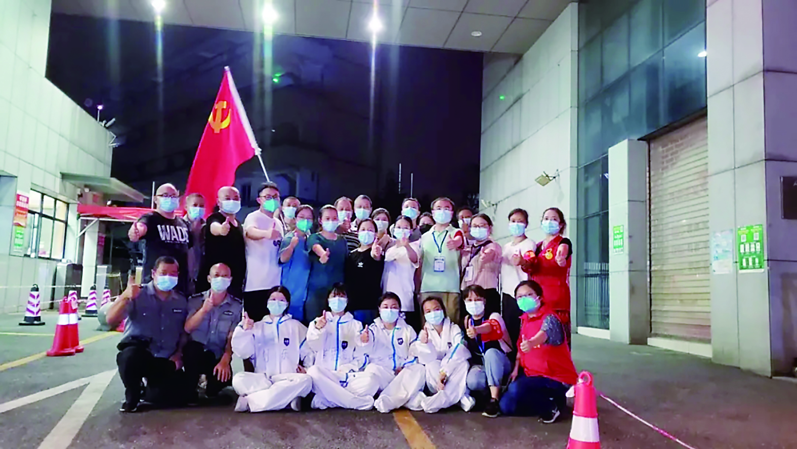 ▲景炎学校核酸检测点工作人员合影。 成建梅 供图