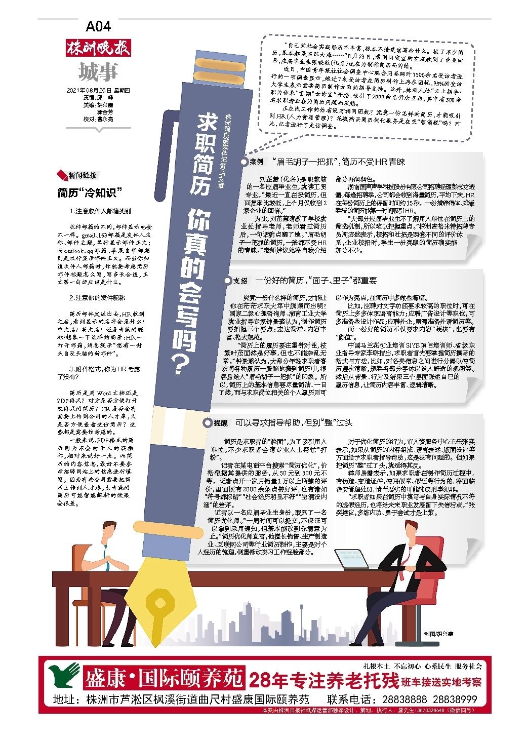 “自己的社会实践经历不丰富,根本不清楚该写些什么。投了不少简历,基本都是石沉大海……”8月23日,看到同寝室的室友收到了企业回函,应届毕业生张晓敏(化名)还在为制作简历而纠结。