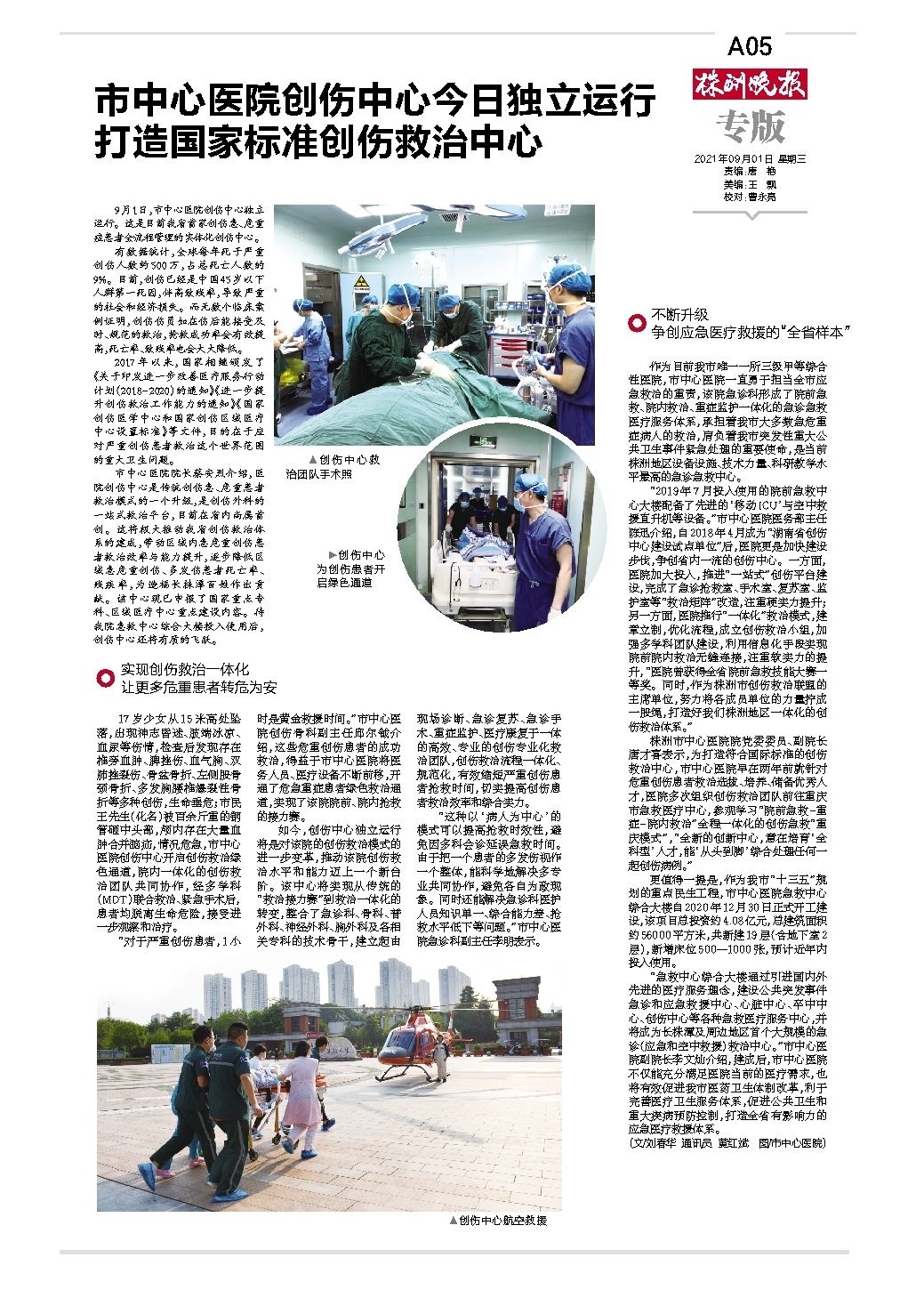 市中心医院创伤中心今日独立运行 打造国家标准创伤救治中心