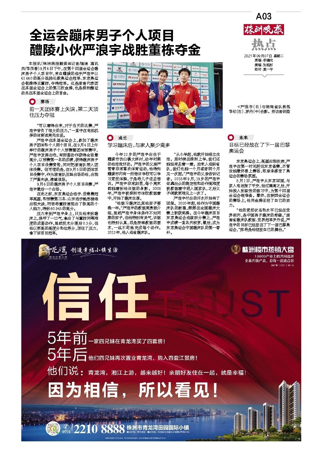 全运会蹦床男子个人项目 醴陵小伙严浪宇战胜董栋夺金