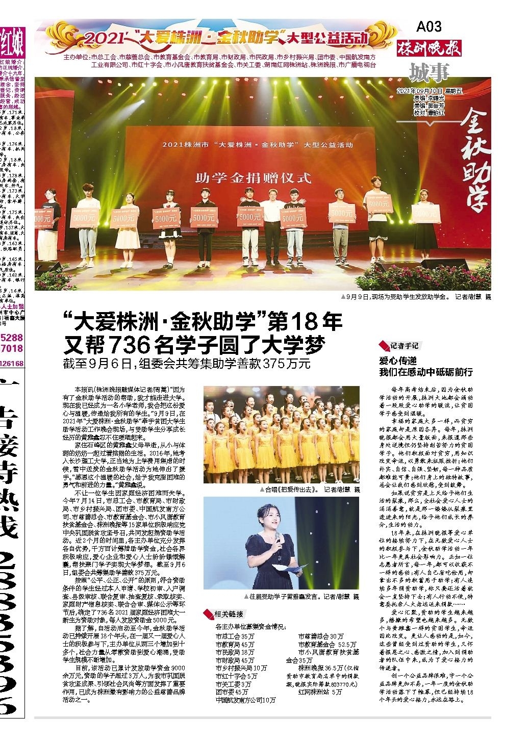 “大爱株洲·金秋助学”第18年又帮736名学子圆了大学梦