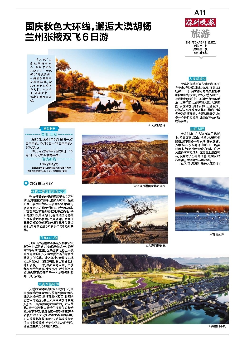国庆秋色大环线,邂逅大漠胡杨 兰州张掖双飞6日游