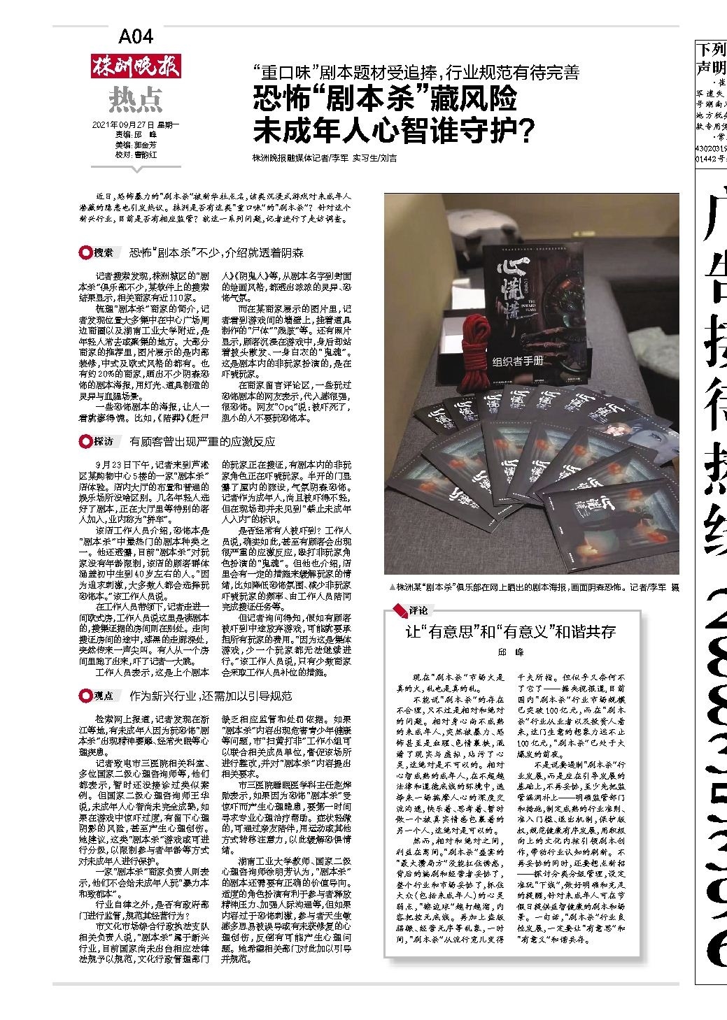 恐怖“剧本杀”藏风险 未成年人心智谁守护?