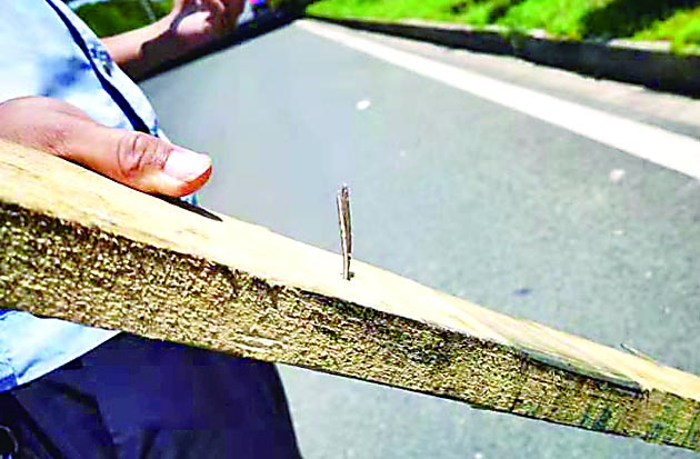 本报讯(株洲晚报融媒体记者/沈全华 通讯员/许琳)8月30日,天元交警大队六中队民警在辖区巡逻时,发现数公里的路面上散落了很多带着钉子的木条,给车辆通行带来安全隐患。