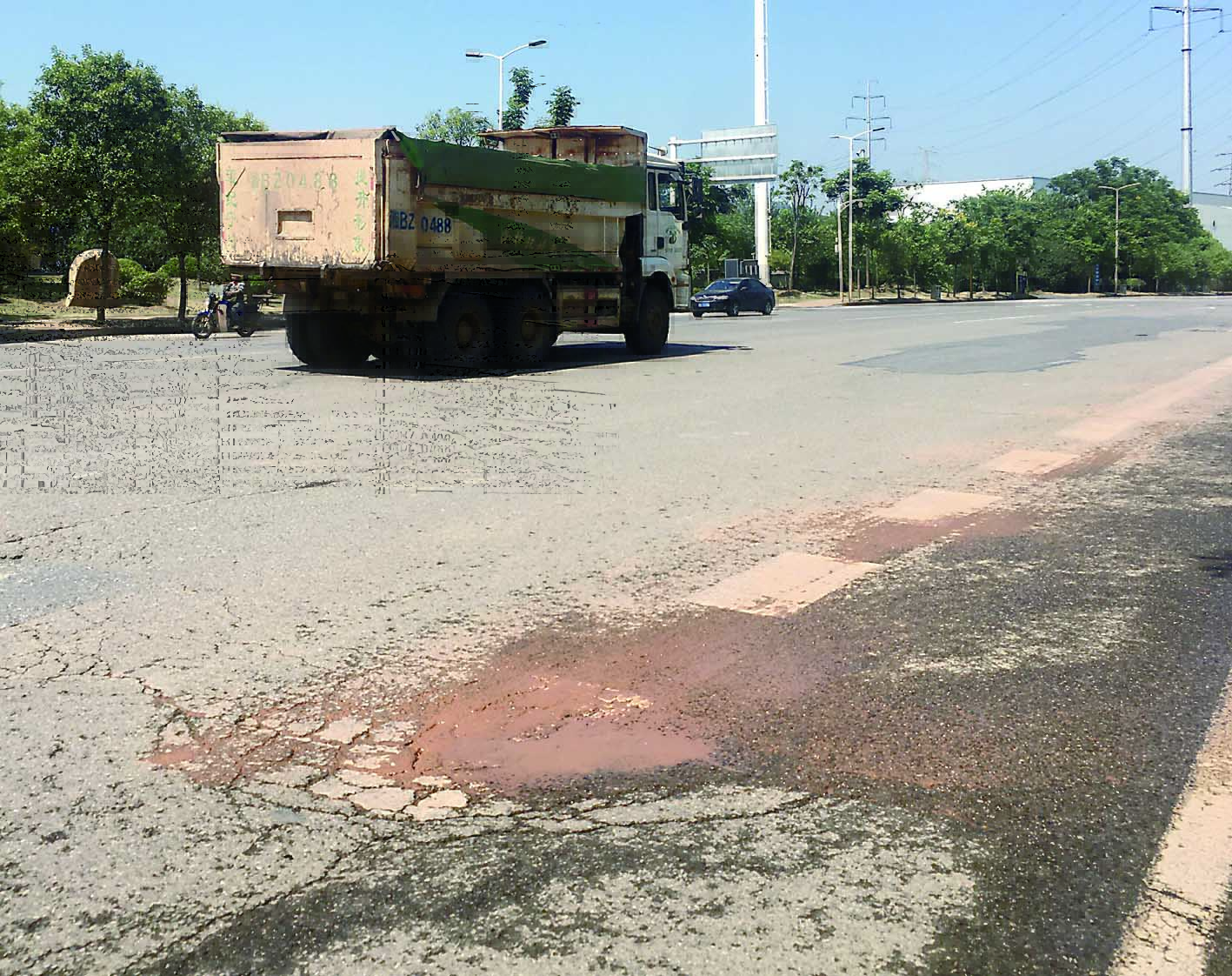 株洲润泽天园环境服务有限公司负责铜霞路路面维修的相关负责人介绍,路面冒泥浆是因为路基稳定层被车辆轧坏了;洒水车洒水过于频繁,造成路面破损低洼处积水,会加剧冒泥浆现象。该负责人表示,铜霞路遭遇运输车碾压,路面经常破损,已出现沉降、松散、翻浆、坑槽等问题,需要进行大修。