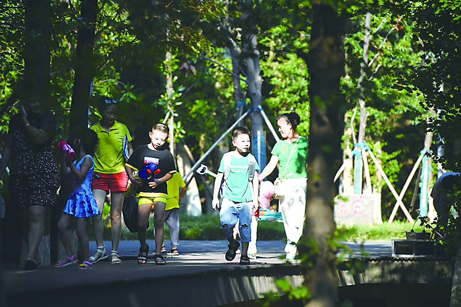▲8月31日,湘江风光带,阳光穿过树林,把人照得格外鲜亮。 株洲晚报融媒体记者/谢慧 摄