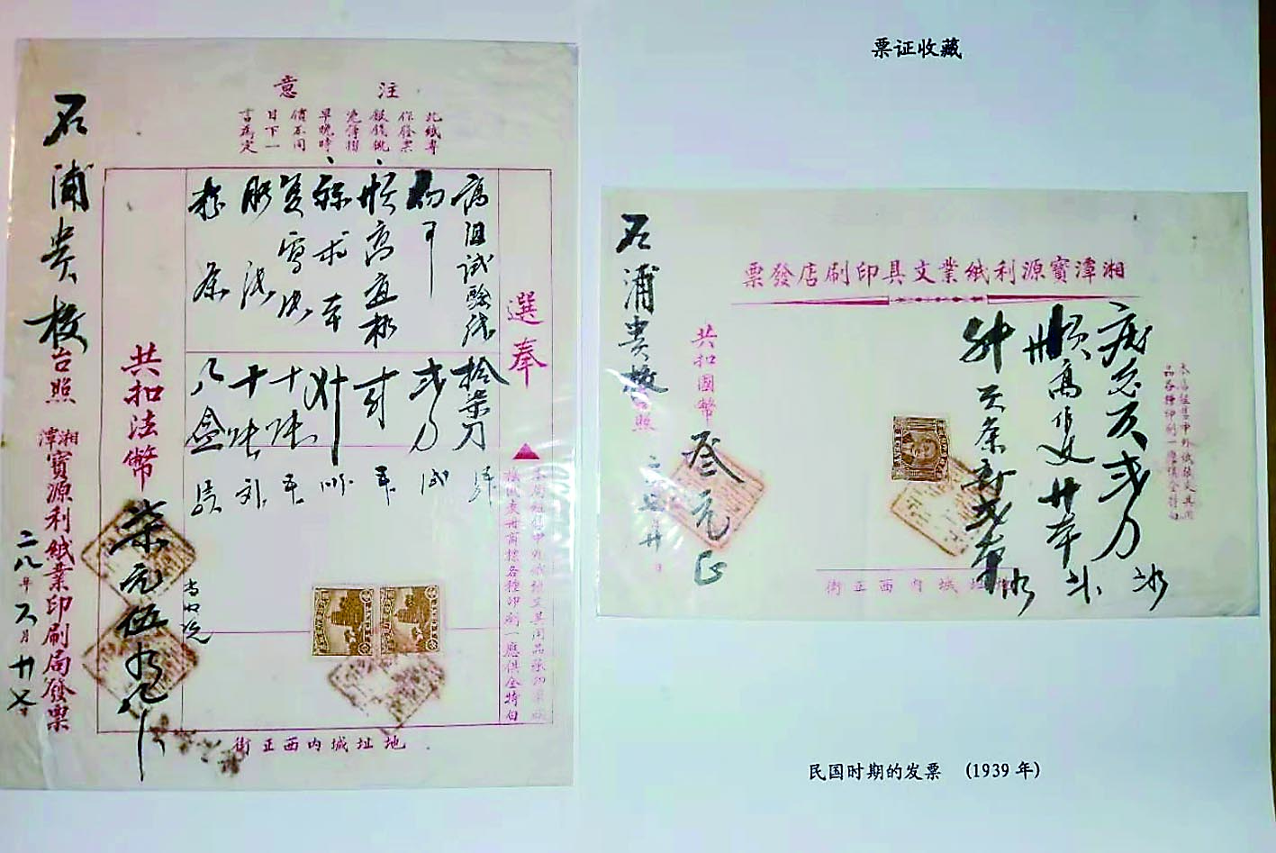 本世纪初,我在钟鼓岭收藏品市场发现两张1939年的发票,意欲买下。但当我看到发票抬头印着“湘潭宝源利纸业文具印刷店发票”字样,觉得是外地的发票,便准备放弃。回到家里,我突然意识到,株洲在当时属于湘潭管辖,于是第二天我又赶去将它买下。