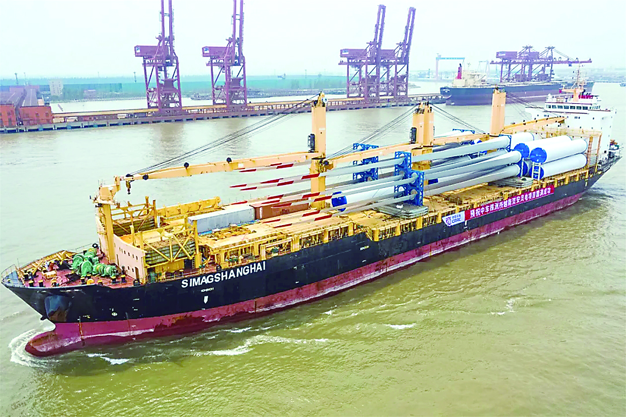 本报讯(株洲晚报融媒体记者/高晓燕)吊装完成,起航!日前,装载着越南双安项目风电整机设备的“丝美上海”号货轮,在拖轮的牵引下,缓缓驶离太仓港润禾码头。这标志着中国中车首个海外风电整机项目的成功“出海”。