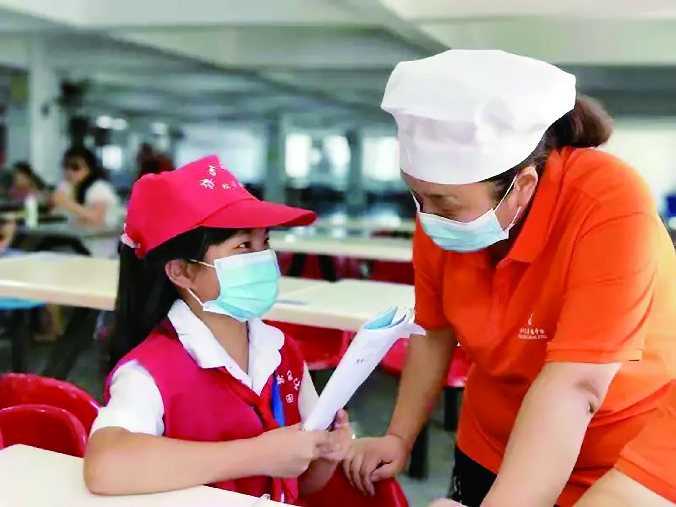 ▲校园记者采访食堂阿姨,了解新学期伙食情况。唐清辉 摄