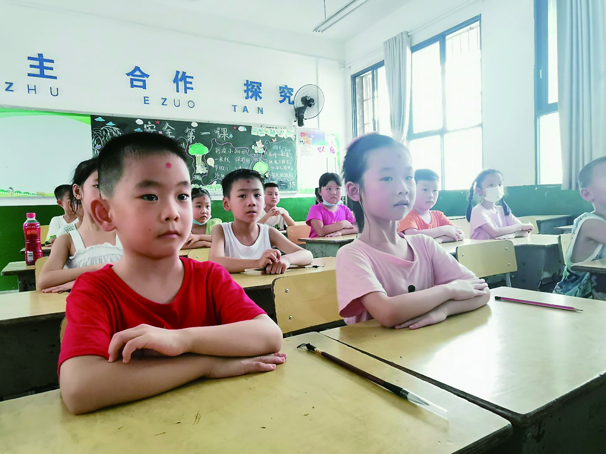 正衣冠、点朱砂、启智慧,是学生们开始学习、走向成功的起点。9月2日,贺家土小学对一年级新生及家长进行了培训,培训内容涉及入学安全教育、列队、放学常规训练等。图为在课堂上认真听讲的孩子们。