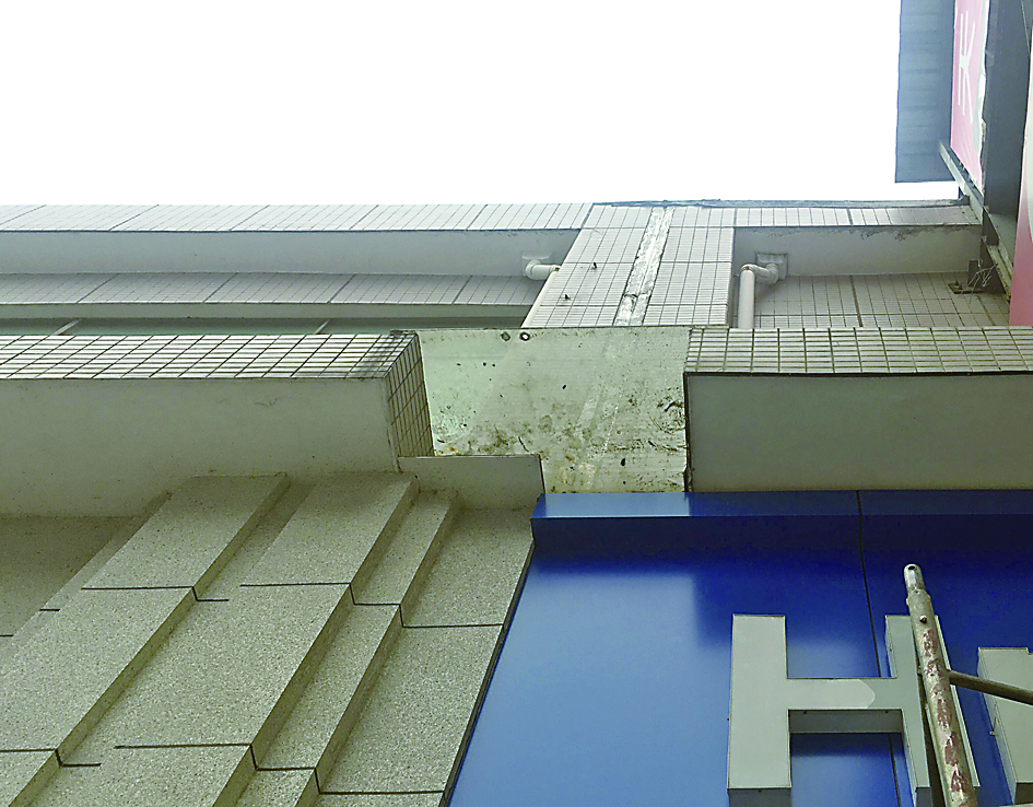 ▲两个屋檐之间,盖有挡雨玻璃。记者/刘平 摄