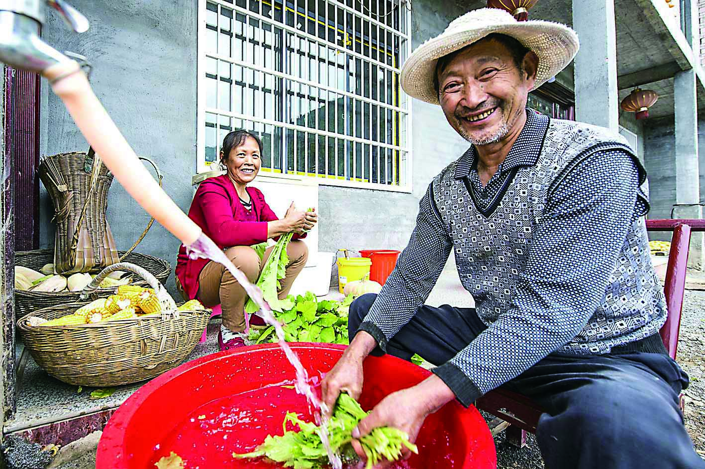 ▲自来水入农家,村民笑开颜。 市水利局供图
