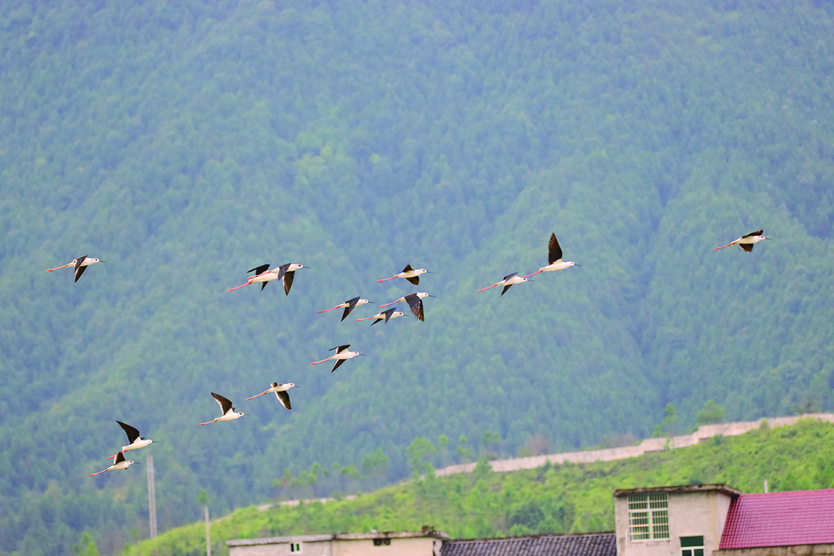 ▲迁徙中的黑翅长脚鹬