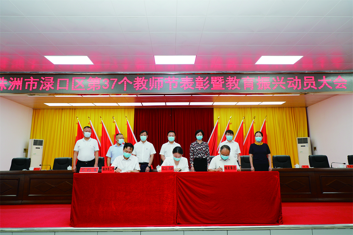 会议宣读了《关于渌口区2021年优秀教育工作者评选结果的通报》,并为获得教书育人优秀奖、师德师风标兵奖、教育管理先进奖称号的教师颁奖,同时还举行了株洲市二中附属第三(南洲)小学联合办学、株洲市幼儿园南洲分园联合办学签约仪式。