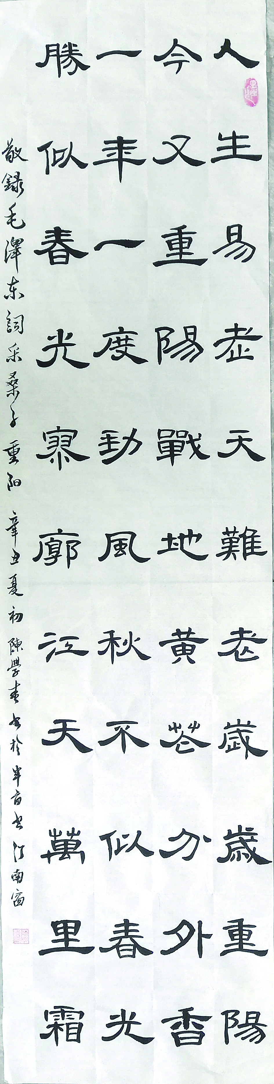 毛泽东诗词 采桑子.重阳 隶书 作者:陈青(株洲晚报老年大学书法班学员)