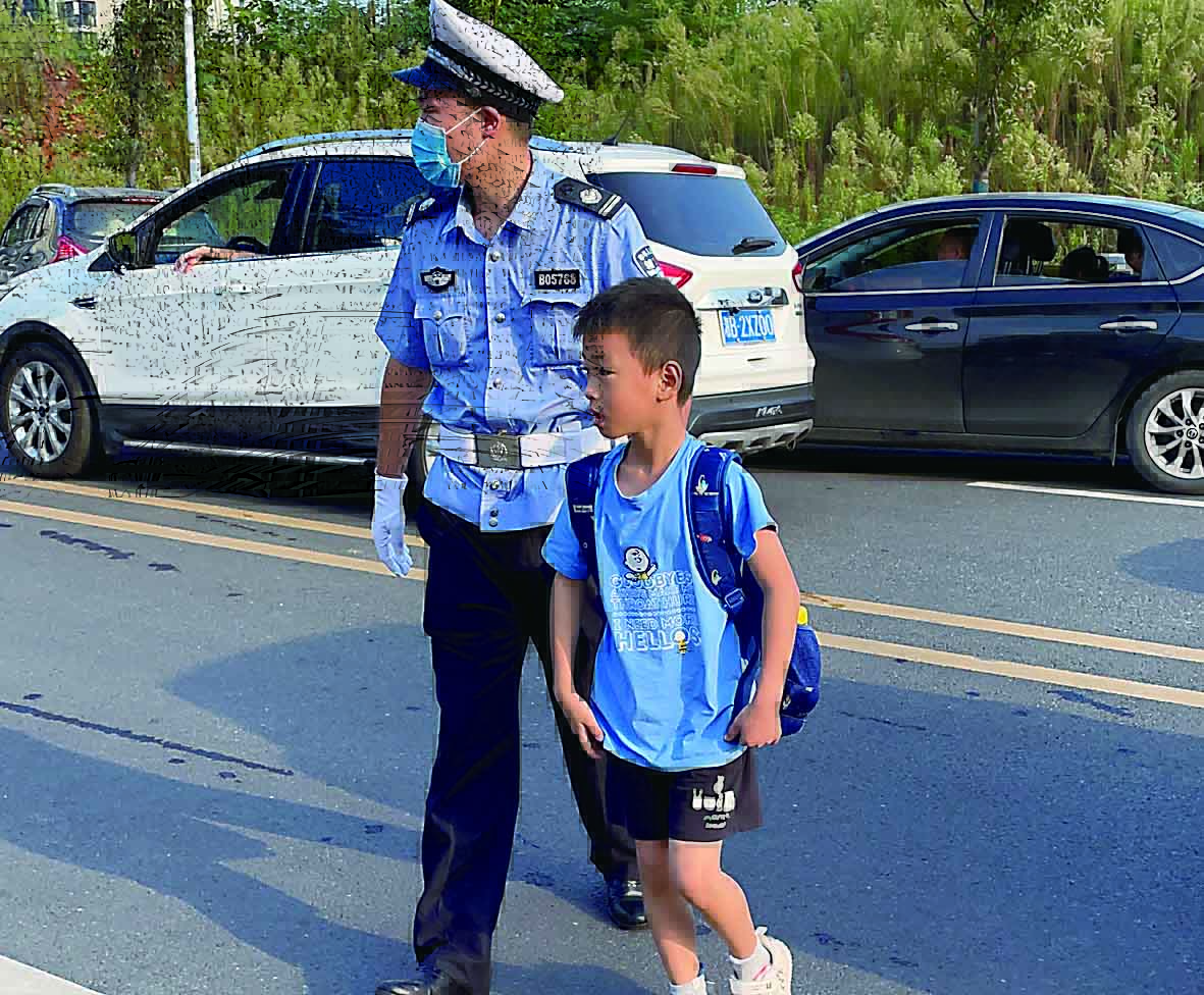 ▲云龙交警帮助护送学生安全过马路。 通讯员供图