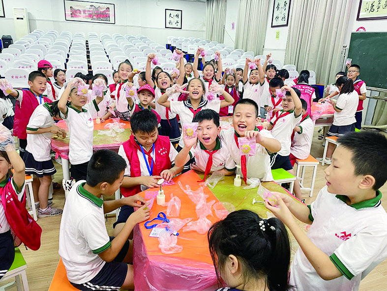 ▲太阳宫小学学生制作的中秋手工花灯