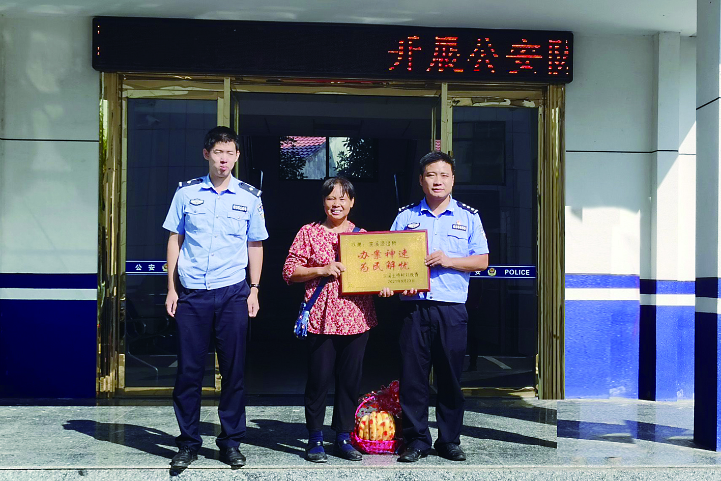 本报讯(株洲晚报融媒体记者/周圆 实习生/孟兰 通讯员/李慧纳)“警察同志,你们辛苦了!没想到你们短时间内就破案了……”9月23日,家住茶陵县湖口镇浣溪土桥村的刘女士激动地从民警手中接过自己被盗的44927元。并向办案民警赠送一块写有“办案神速,为民解忧”的牌匾。