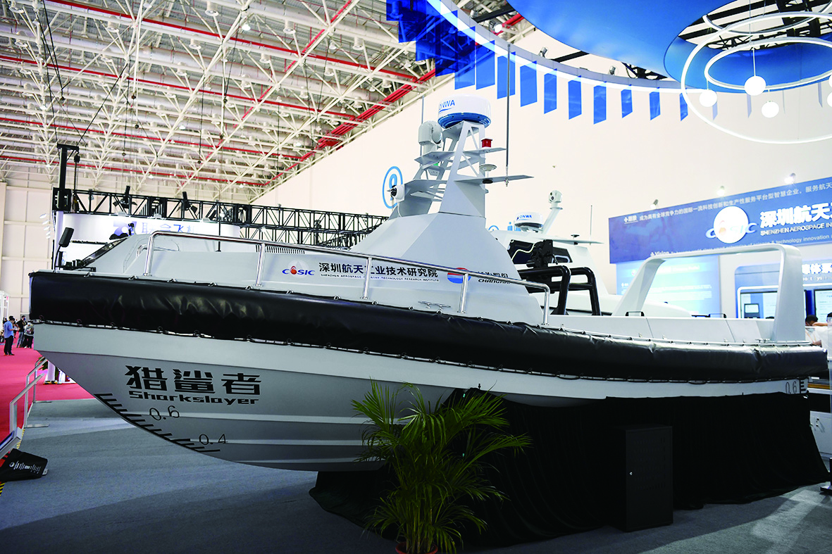 ▲航展上展出的巡逻警戒无人艇(9月29日摄)。