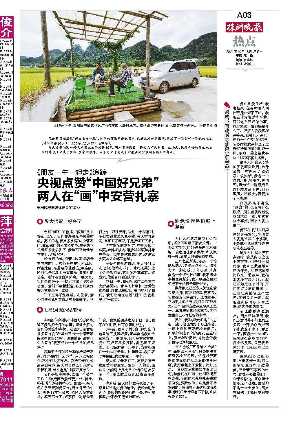 央视点赞“中国好兄弟” 两人在“画”中安营扎寨