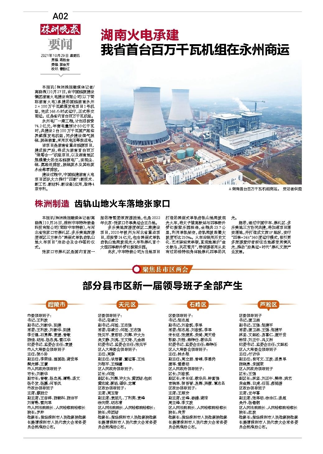 湖南火电承建 我省首台百万千瓦机组在永州商运