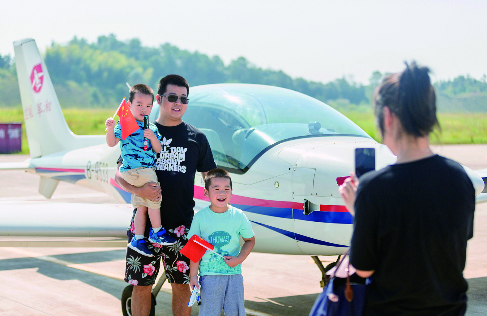 ▲10月1日,游客在芦淞机场拍照留念。 通讯员供图