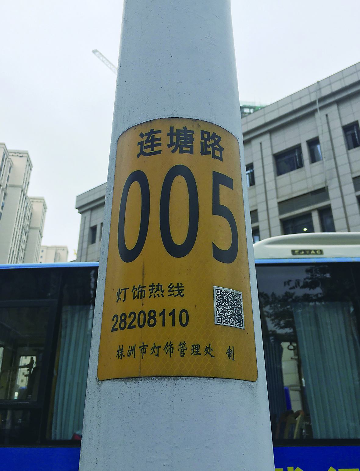 ▲路灯杆上路名为“连塘路”。记者/刘平 摄