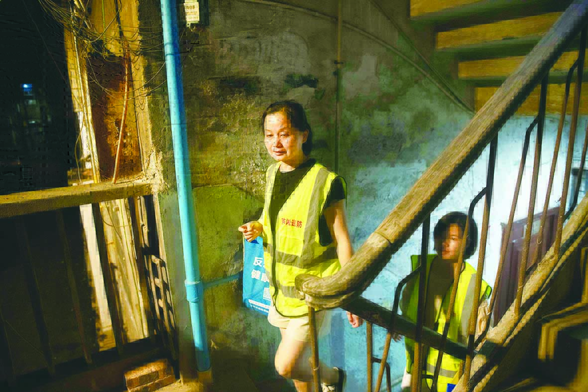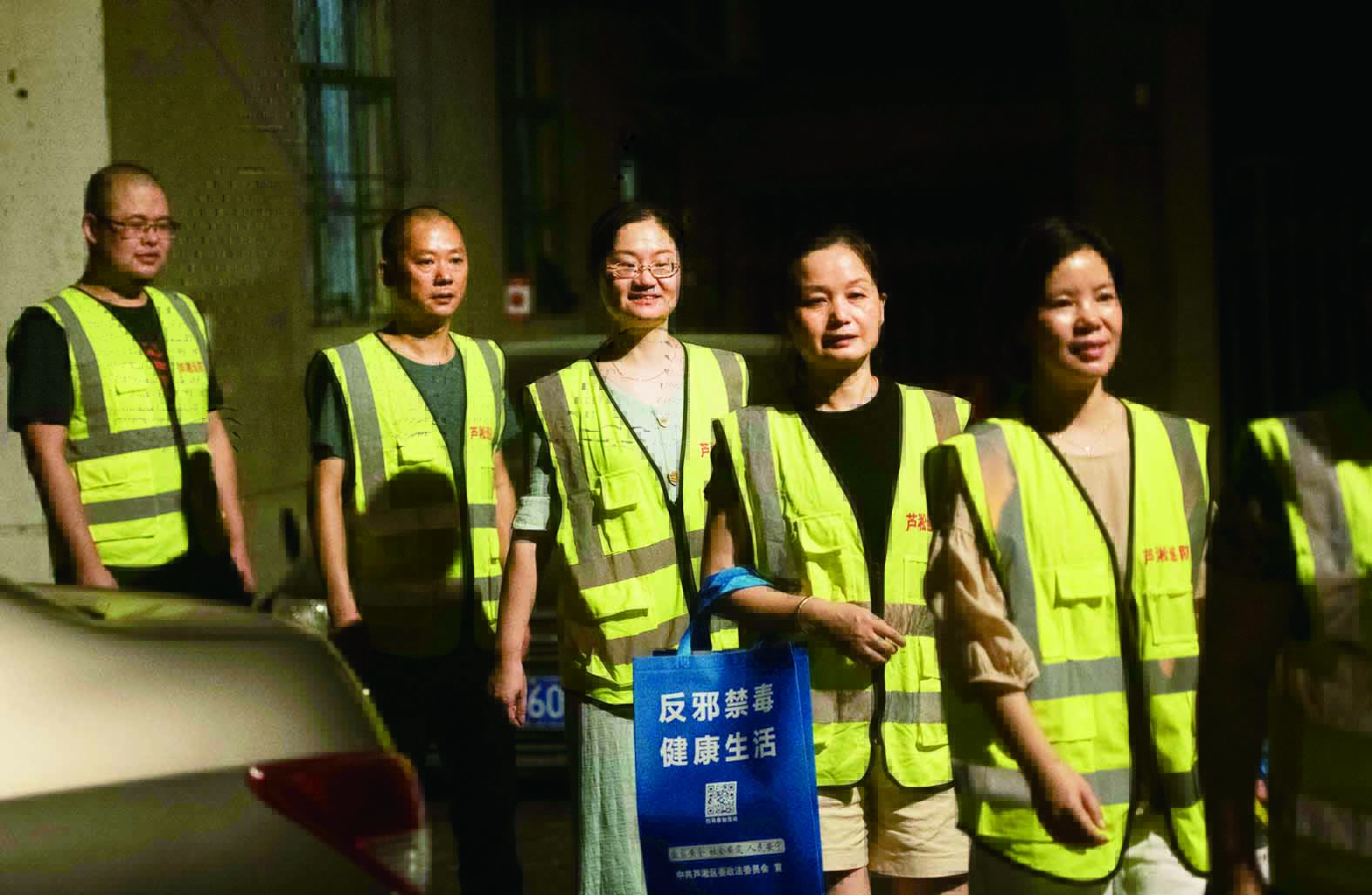 相比繁华的大街,背街小巷显得昏暗和冷清。小巷深处走来一群身穿反光马甲的队伍,他们像夜明珠一般指引光明,给附近居民温暖和安全感。
