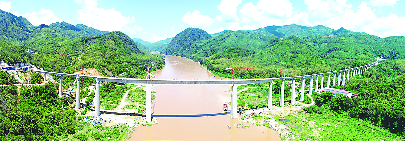 ▲去年7月24日,在老挝拍摄的中老铁路班纳汉湄公河特大桥(无人机照片)。 新华社发