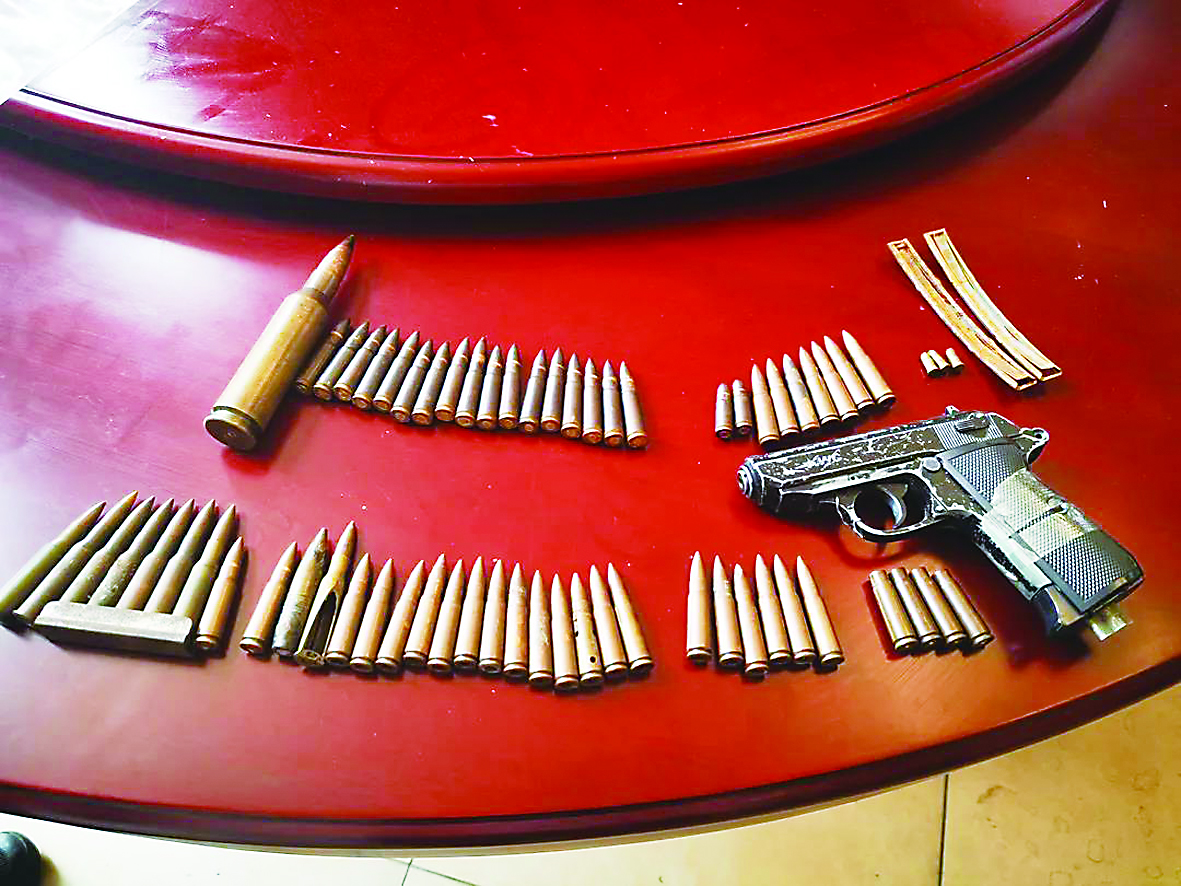 ▲民警收缴的非法储存枪支弹药。通讯员供图
