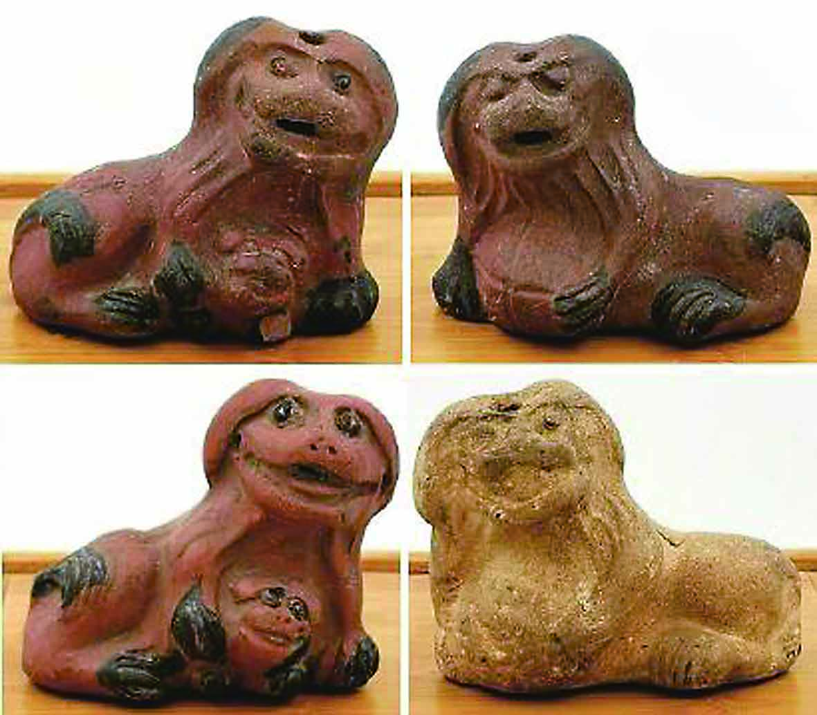 我国利用陶土雕塑动物造型的历史源远流长。最早可追溯到5000多年前,那时先人就捏塑泥质、陶质小动物,如河姆渡文化的陶猪、龙山文化的陶象等。宜兴紫砂象生器制作也由来已久。《阳羡名陶录》曾记载明代万历年间陶艺大家陈仲美擅长制壶和雕塑,其壶似花果,草虫缀之,鸡鸣蓝天,龙戏海涛,形神兼备;其所创香插、茶宠、狻猊炉、辟邪、镇纸等几案清供,重镂叠刻,神采欲生。