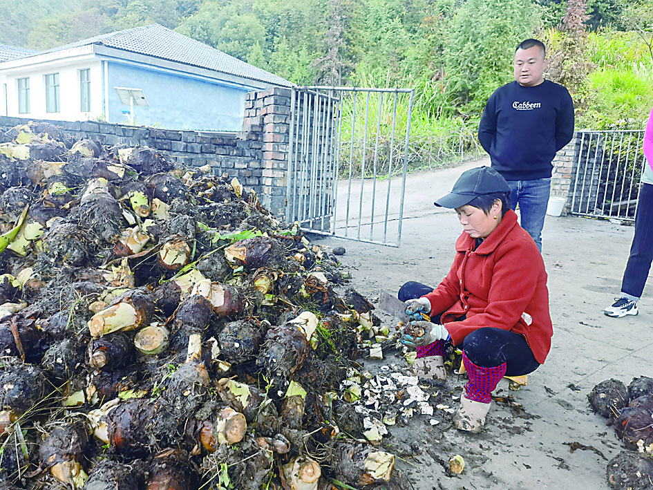 ▲村民忙着分拣香芋。 陈洲平 摄