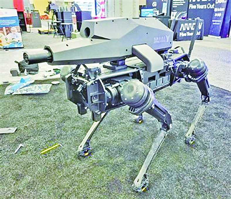 据报道,战斗“机器狗”由四足无人载具和狙击步枪组成。四足无人载具即“机器狗”,目前已在美国空军服役。这款“机器狗”重约7.7千克,反应灵敏,能够自主避障。战斗“机器狗”背部安装的狙击步枪采用专为远距离精确射击而设计的6.5毫米克里德莫尔子弹,弹夹容量10发,可对1.2千米范围内的目标实施精确射击。