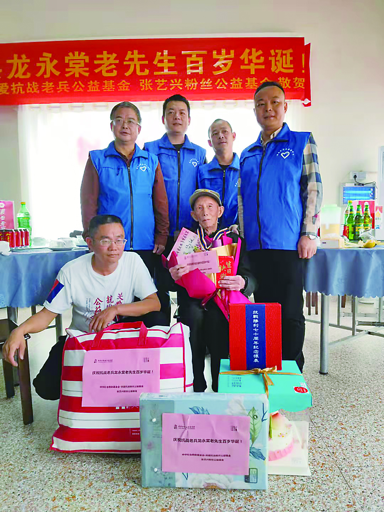 花甲又添四十岁月,古稀更添三十春光。10月27日,醴陵市板杉镇的一家酒楼里欢声笑语不断,抗战老兵龙永棠迎来了百岁生日。我市“老兵之家”和民革志愿者为龙永棠带来了生日蛋糕和礼物,与老人的家人一起,共同为龙永棠庆祝百岁寿诞。