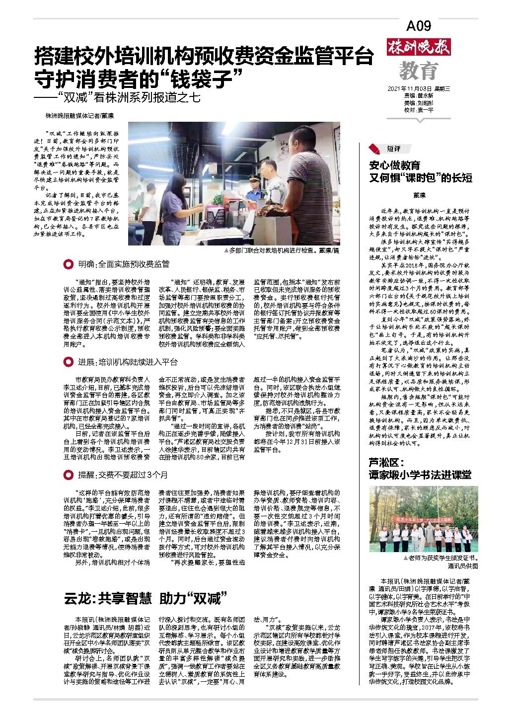 搭建校外培训机构预收费资金监管平台 守护消费者的“钱袋子”